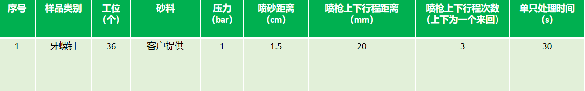 - 产品转至喷砂工位后,产品开始自转,喷头可设定上下升降行程,对产品均匀喷砂;